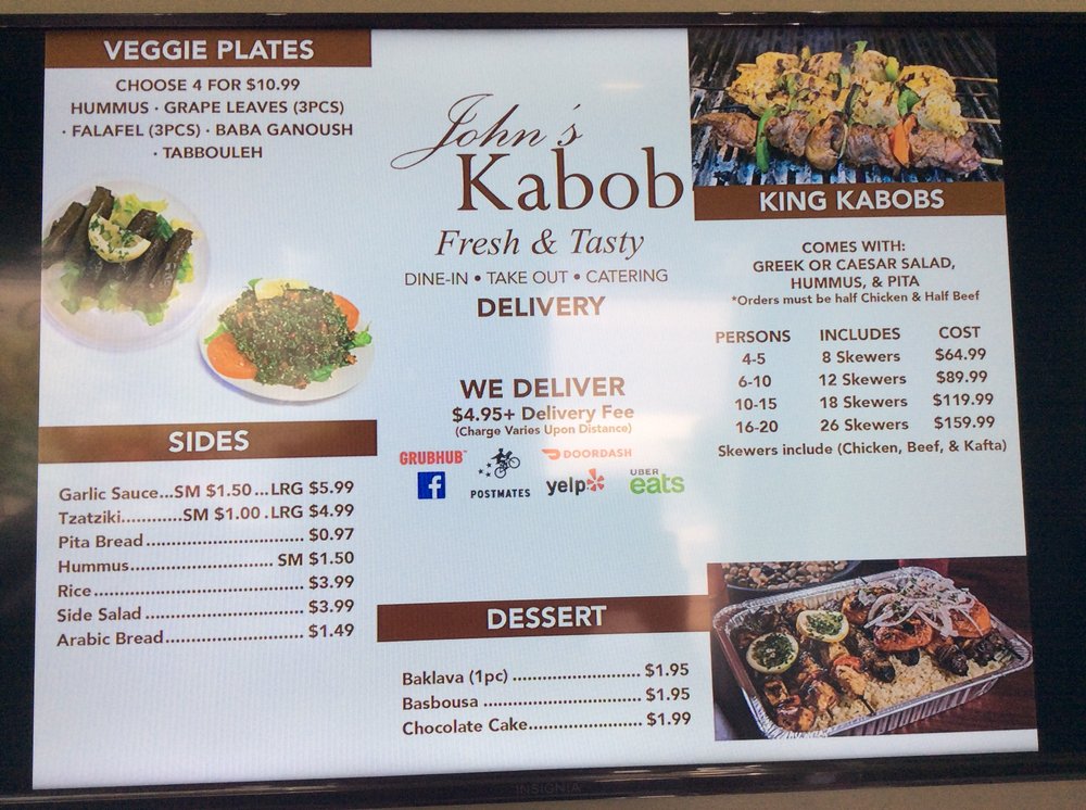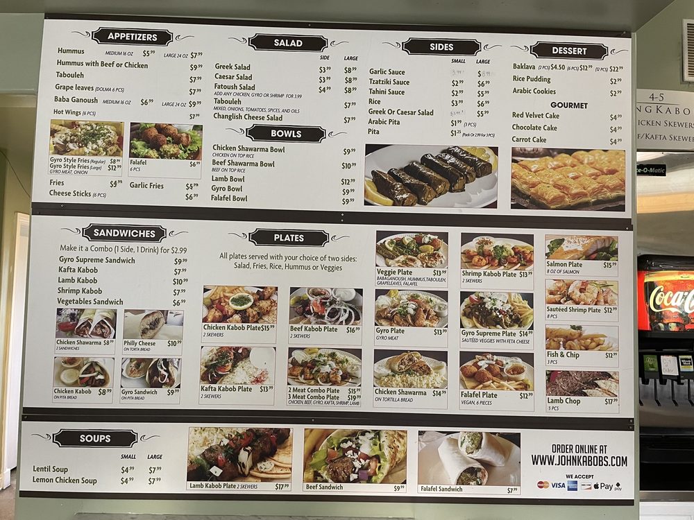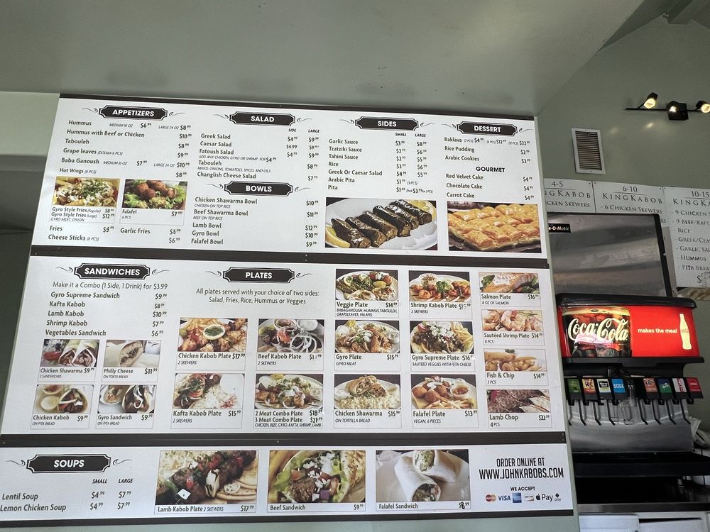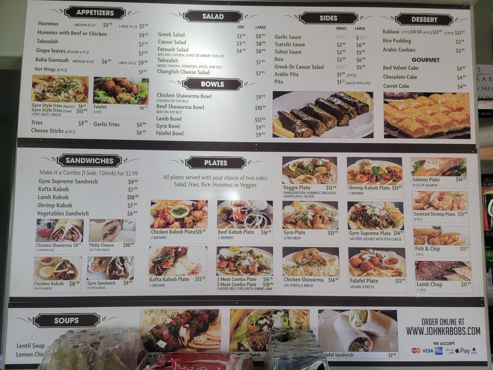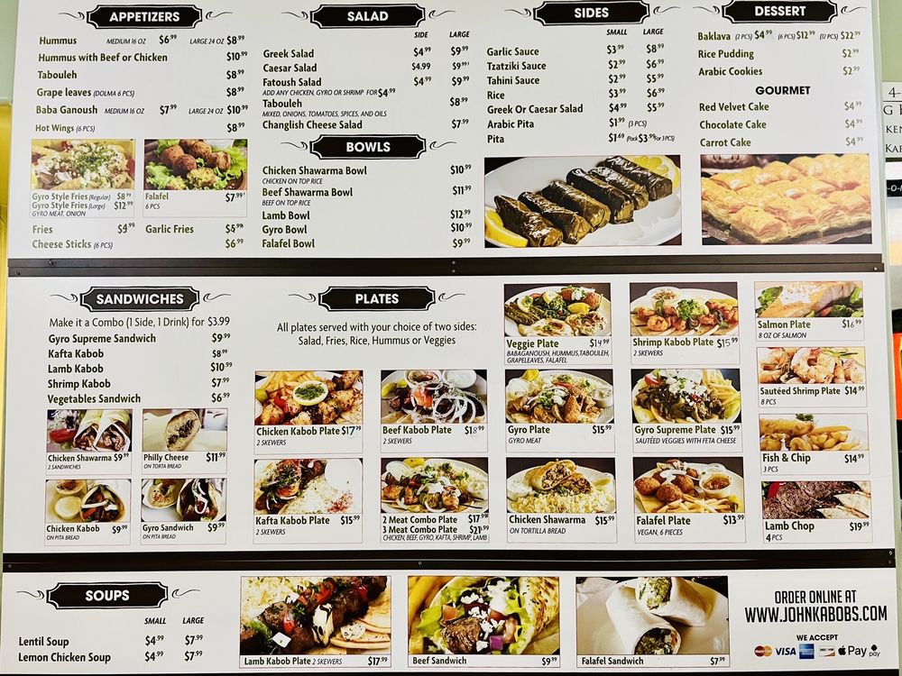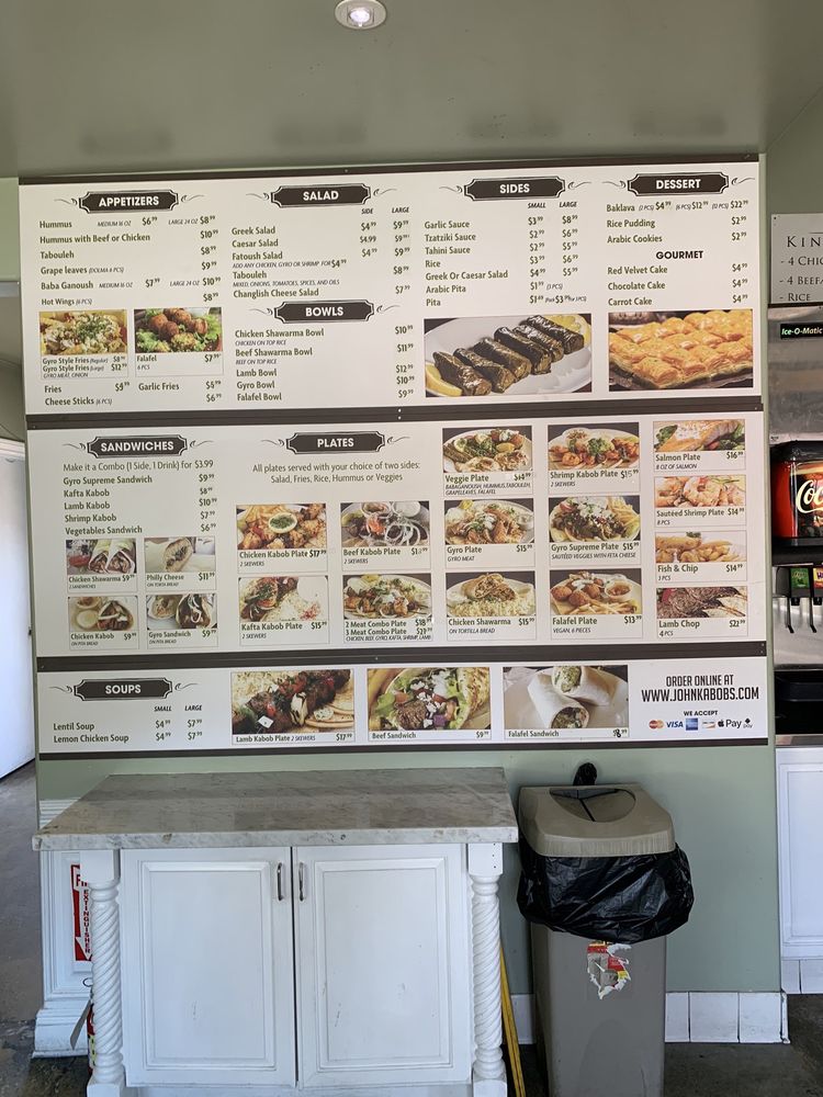 Introducing the menu at John Kabobs, located in Monterey Park, CA, offers a diverse range of Mediterranean dishes. From flavorful beef skewers to delicious chicken shawarma, customers rave about the generous portions and tasty options. The garlic dip, hummus, and fluffy buttery rice stand out as crowd favorites. The attention to detail in the preparation and service for takeout orders is highly praised. With a variety of options for vegetarians and vegans, John Kabobs caters to a wide audience. The shrimp plate, beef kabob, and combo plates receive glowing reviews for their taste and quality. Whether dining in or ordering takeout, the authentic flavors and friendly service at John Kabobs make it a top choice for Mediterranean cuisine enthusiasts.